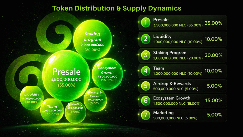 Loyalty Rewards for Long-Term Holders: To recognize and incentivize our most dedicated community members, the platform has established an exclusive Staking Rewards Pool. By locking NLC tokens in this designated pool, users gain access to enhanced benefits while contributing to the project’s sustainable growth.
